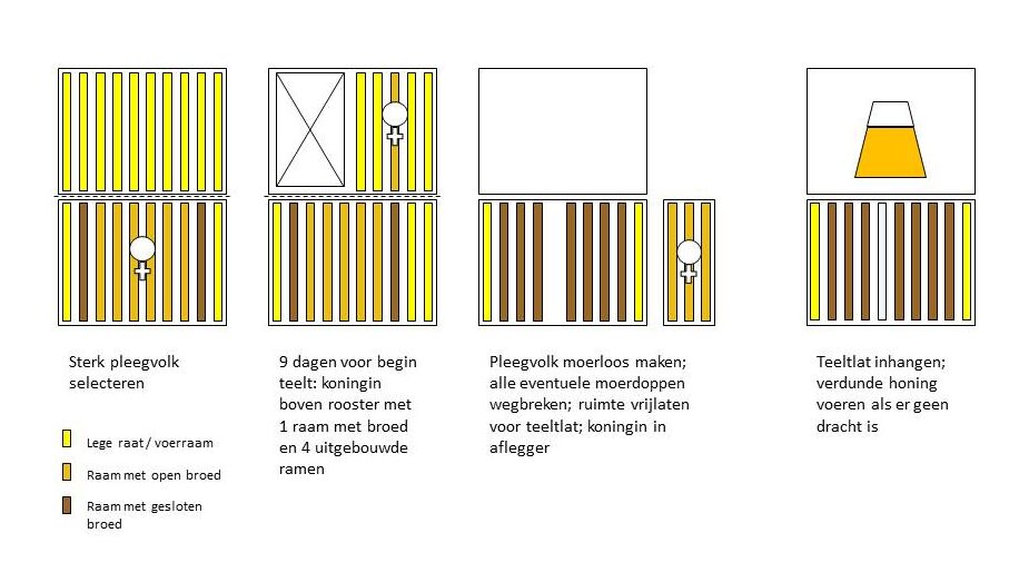 De teelt kost dus een productievolk, maar gaat minder ten koste van de kracht van andere volken dan wanneer we de starter en finisher-methode gebruiken (elders afdoende beschreven).
